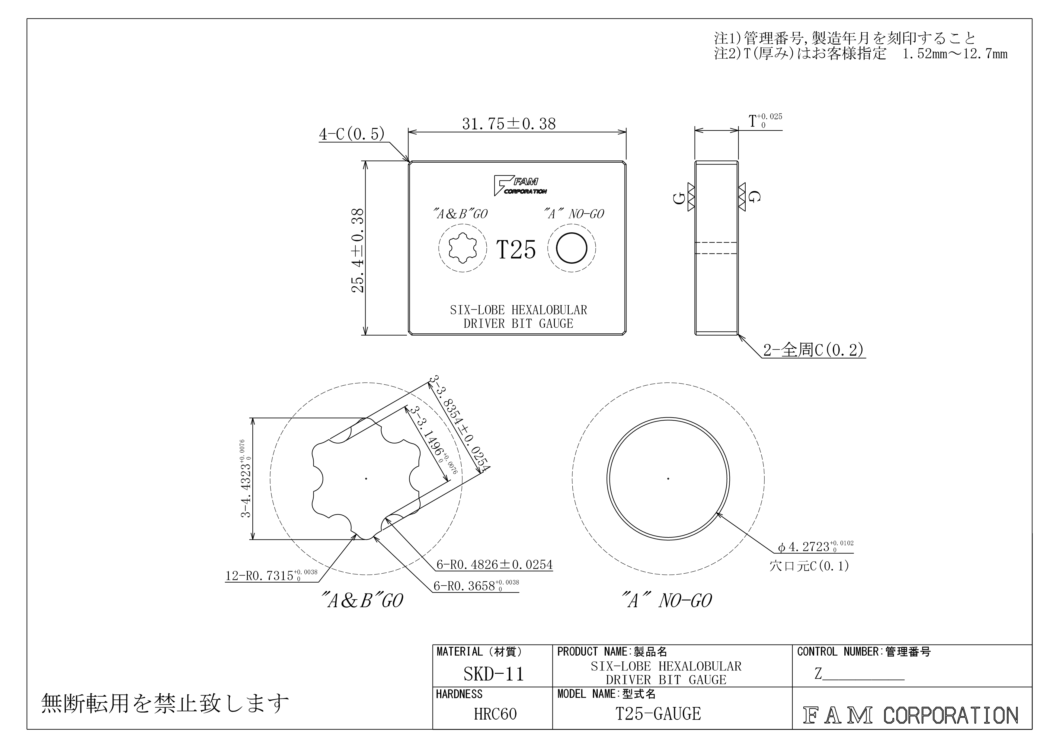 大径と小径を別々に止検査可能なヘクサロビュラドライバービットゲージの製作
