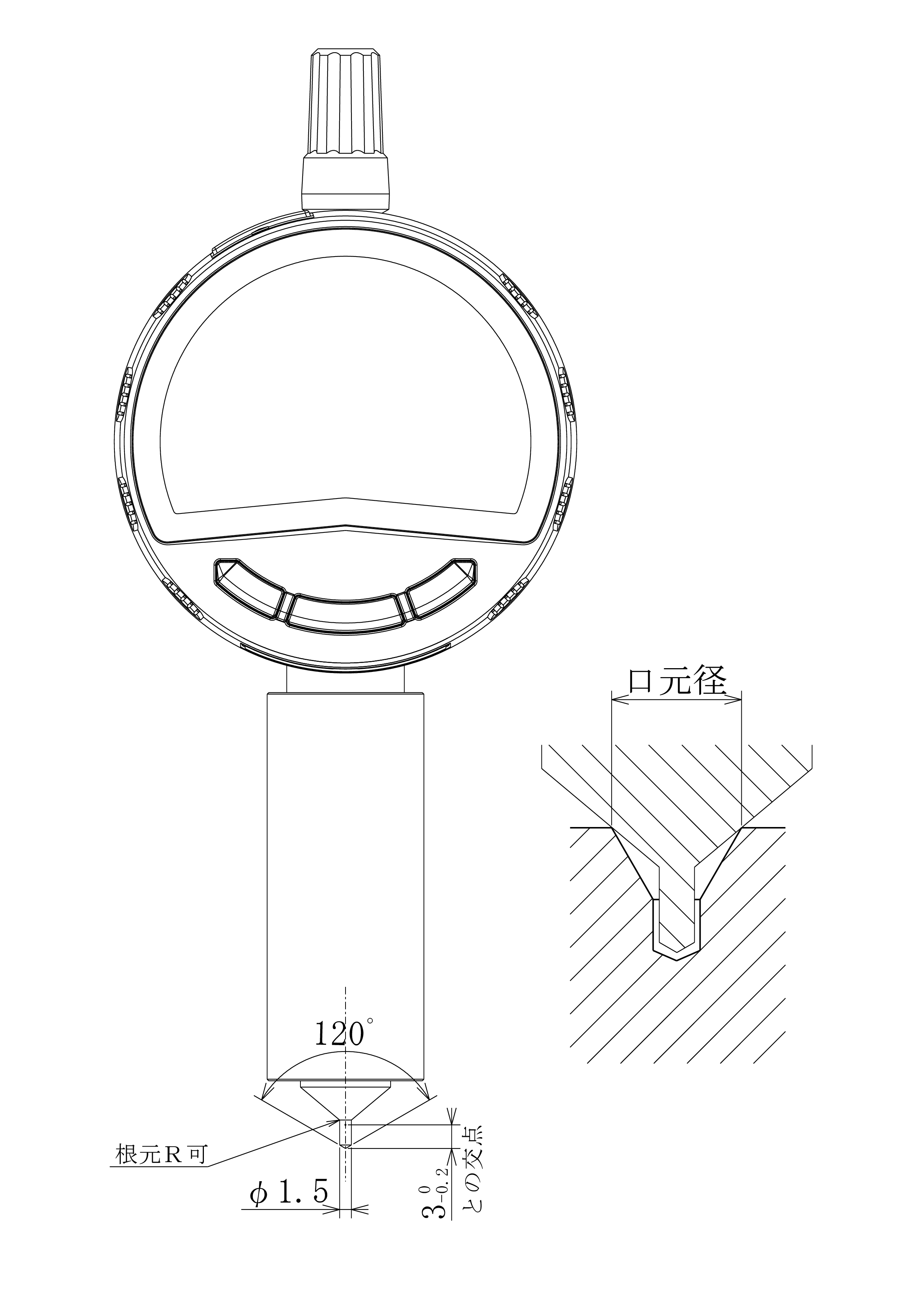 センター穴のドリル折れを確認可能な特注口元径測定器