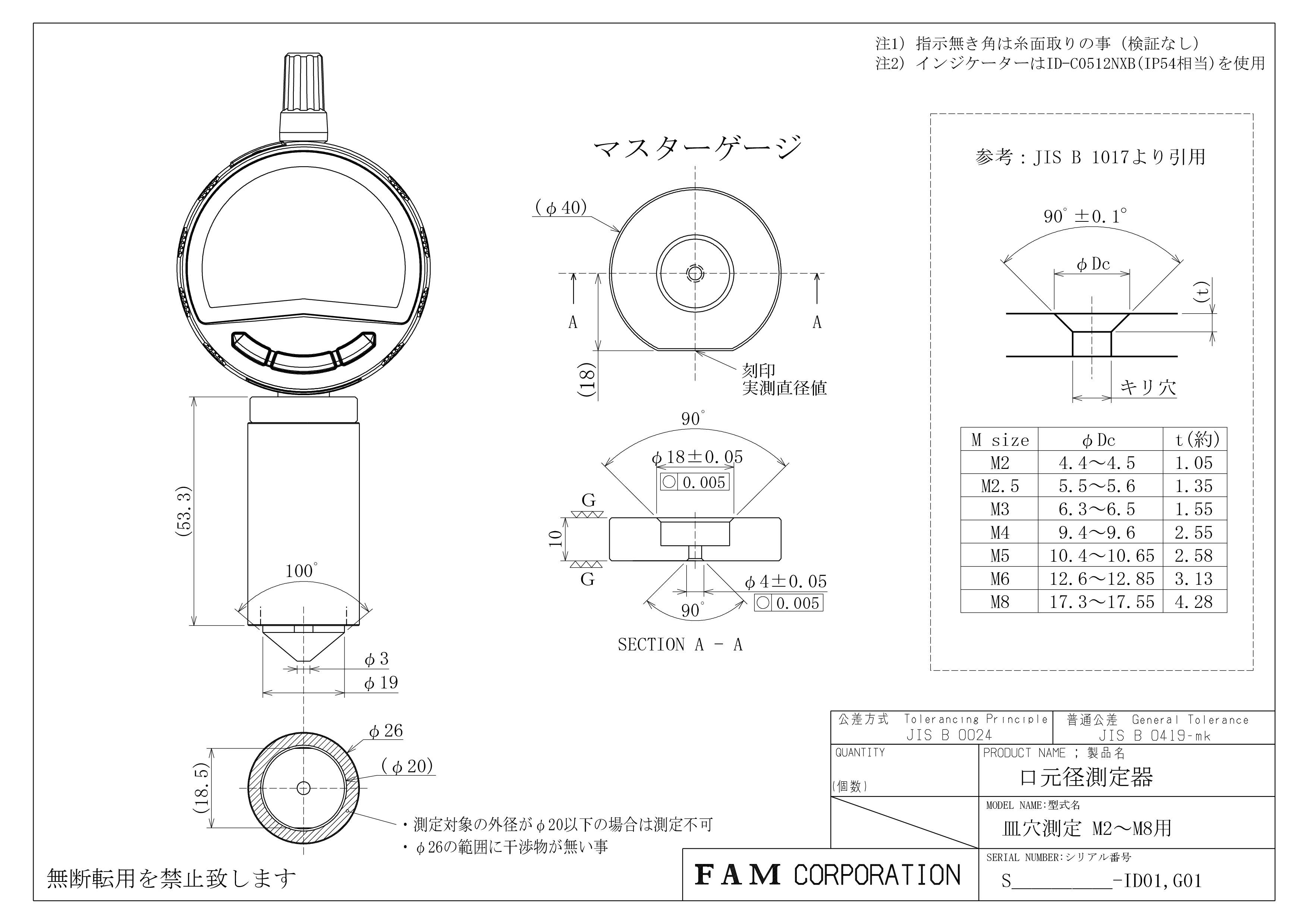 そこで、様々なユーザー様から御愛用いただいております【口元径測定器】を、皿穴測定に特化させた内容でお客様に提案させていただき、製作をするはこびとなりました。